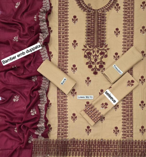 & Free Shipping✨ Mix Brands – 3-Piece Embroidered Lawn Suit with Bamber Dupatta (90/70 Lawn) (Unstitched)