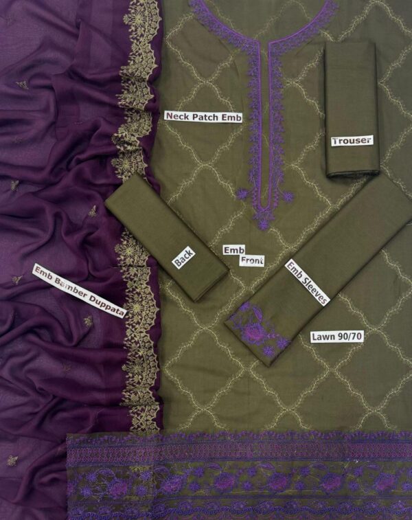& Free Shipping✨ Mix Brands – 3-Piece Embroidered Lawn Suit with Bamber Dupatta (90/70 Lawn) (Unstitched)