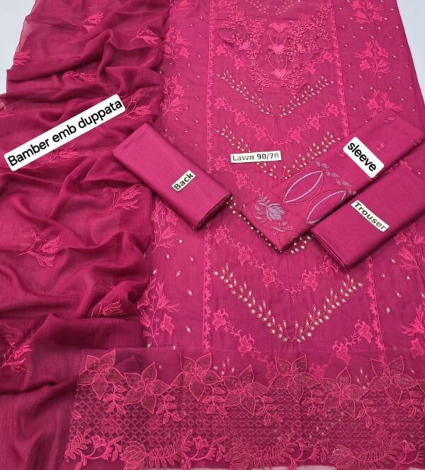 & Free Shipping✨ Mix Brands – 3-Piece Embroidered Lawn Suit with Bamber Dupatta (90/70 Lawn) (Unstitched)