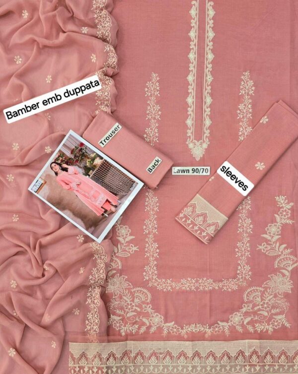 ✨ Mix Brands – 3-Piece Embroidered Lawn Suit with Bamber Dupatta (90/70 Lawn) (Unstitched)