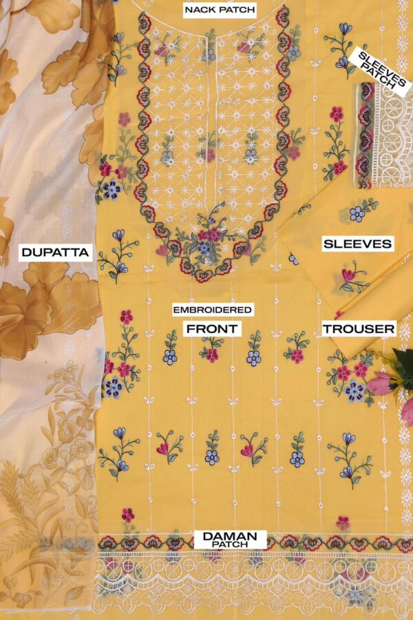 • Dupatta: Digital Printed Swiss Voile for a soft, flowy finish