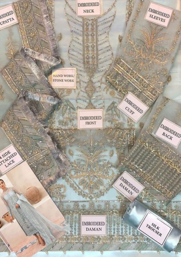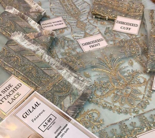 • Front: Organza embroidered with sequins & delicate handwork