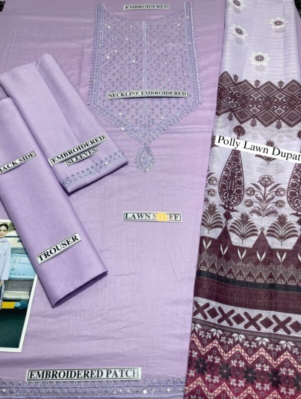 🔸 Front: Lawn with Neckline Embroidered Patch